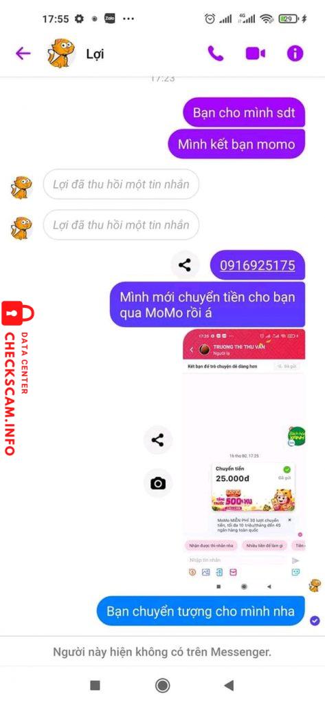 诈骗者警报: Trương Thị Thu Vân 已报告: November 16, 2024 诈骗者信息 全名: Trương Thị Thu Vân 电话号码: 0939649911 支付网关: Momo 支付账户: 0939649911 类别: 市场诈骗 来源: Checkscam 证据文件 报告描述 Lừa đảo momo chuyển tiền xong block 评论 您的评论 添加评论 暂无评论。成为第一个分享您与此诈骗者经历的人。