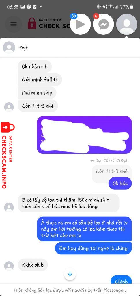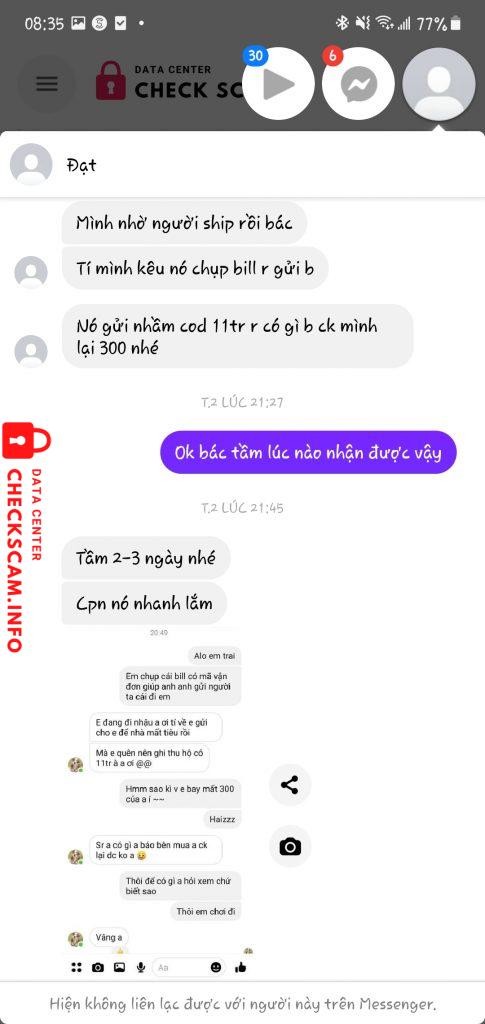 诈骗者警报: Võ Thành Đạt 已报告: November 16, 2024 诈骗者信息 全名: Võ Thành Đạt 电话号码: 0333085521 支付网关: Lừa đảo qua momo 类别: 市场诈骗 来源: Checkscam 证据文件 报告描述 Lừa đảo bán pc cọc ship cod xong block 评论 您的评论 添加评论 暂无评论。成为第一个分享您与此诈骗者经历的人。