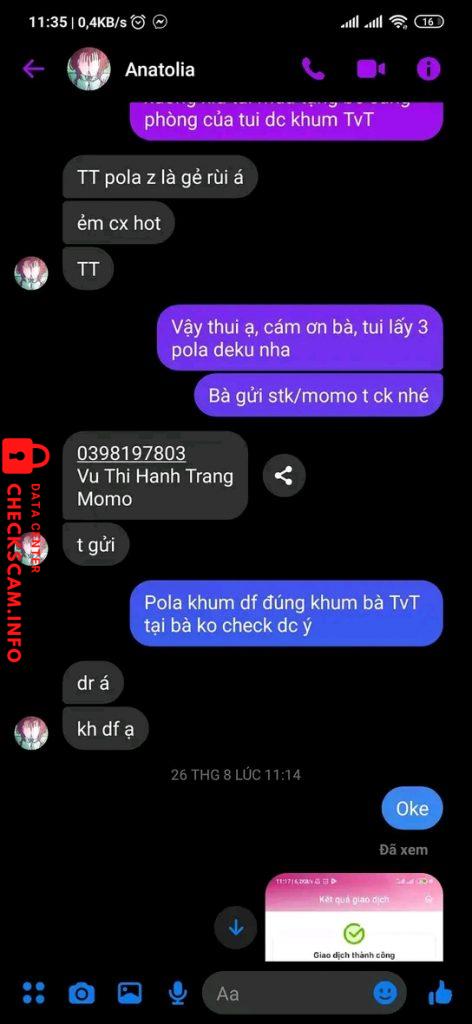 诈骗者警报: vu thi hang trang 已报告: November 16, 2024 诈骗者信息 全名: vu thi hang trang 电话号码: 0364332959 支付网关: momo 支付账户: 0364332959 类别: 市场诈骗 来源: Checkscam 证据文件 报告描述 评论 您的评论 添加评论 暂无评论。成为第一个分享您与此诈骗者经历的人。