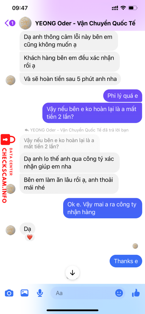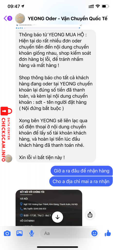 诈骗者警报: VU THI TUYEN 已报告: November 16, 2024 诈骗者信息 全名: VU THI TUYEN 电话号码: 0349036923 支付网关: MB Bank 支付账户: 99299399949999 类别: 市场诈骗 来源: Checkscam 证据文件 报告描述 Họ đăng mua hộ hàng Nhật, kêu gửi link, chuyển khoản. Sau khoảng thời gian ko thấy hàng về thì họ lại bảo trục trặc đơn và kêu chuyển khoản thêm lần nữa. Dù chuyển hay ko thì cũng ko nhận được hàng. 评论 您的评论 添加评论 暂无评论。成为第一个分享您与此诈骗者经历的人。